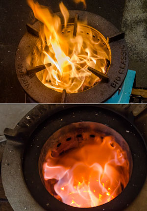 Biomass, Agriculture waste, Dung cake Charcoal etc. can be used as fuel.